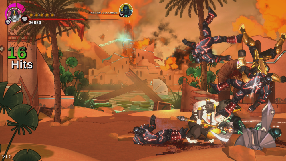 The animations and fighting are very fluid once you get used to a weird delay between moving and attacking. It took me a hot minute to get used to but after a while it feels great. You can switch direction mid combo to dispatch anything that might be sneaking up behind you. The depth movement is a little bit tricky on the eye as you feel like you are on the same level as an enemy but none of you attacks hit. Some of the ranged enemies are a pain to take down.
