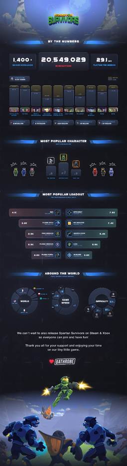 The best thing about Spartan Survivors, it will cost you absolutely nothing to play. You can download the game for free now on itch.io and it will be coming to Steam and Xbox later this year. The game was downloaded almost 1,500 times in its 72 hours with over 20m grunts, elites and the rotten flood being obliterated in that time. Here’s an infographic highlighting early player success:
