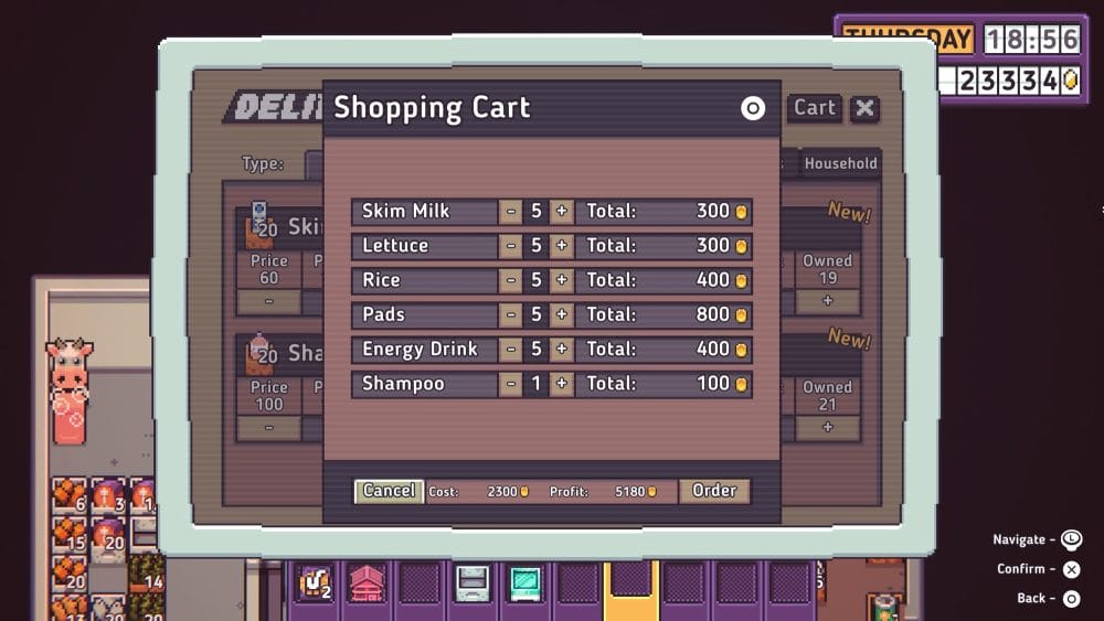 Now, unless you’ve been super neglectful of your inventory and have your storage room completely devoid of any products, there’s a huge chance that you don’t need to keep any of the stuff you ordered! Simply follow the instructions, then once the trophy/achievement pops, simply reload the save. This is why I suggested doing it first thing in the morning, so that you won’t waste any progress by reloading.