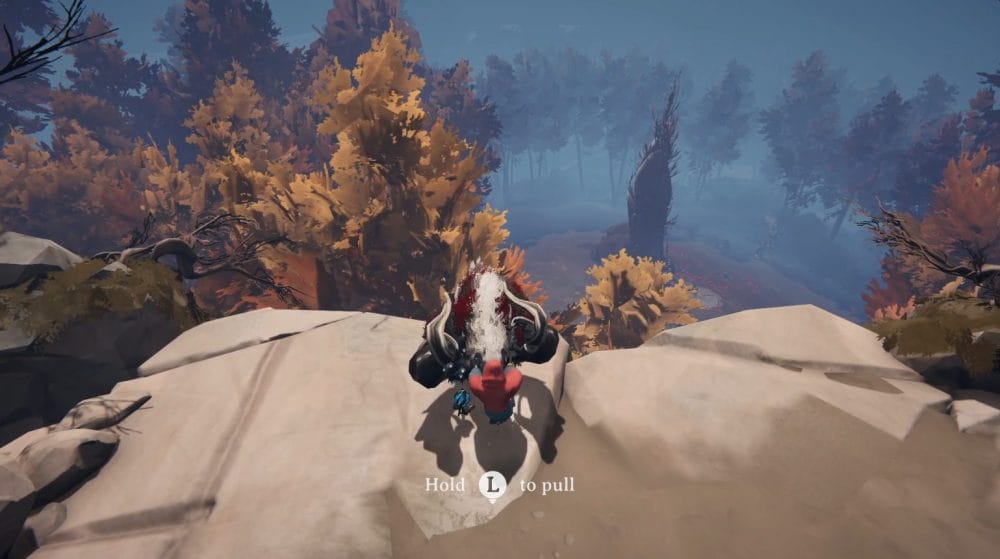 Later on, you will be guiding your herdling up the side of a mountain peak, when you will spot some of the stick totems that alert the giant birds from Chapter 3, the Autumn Forest. Soon after, a Calicorn will come running towards you and hit one of the totems.
