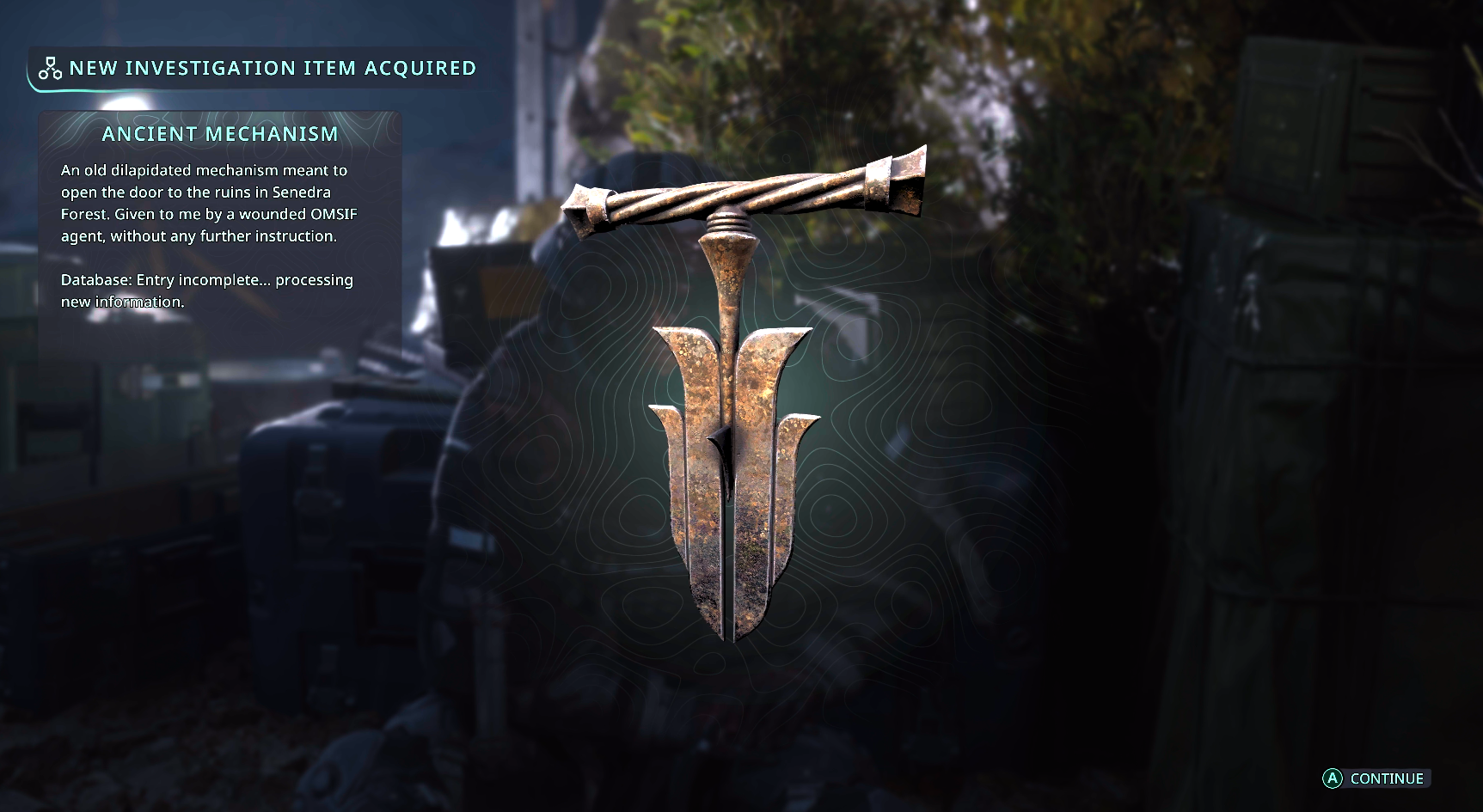 Once you’ve found the medkit, head back to the soldier. In return for helping him, he will give you a key item, the ‘Ancient Mechanism’.
