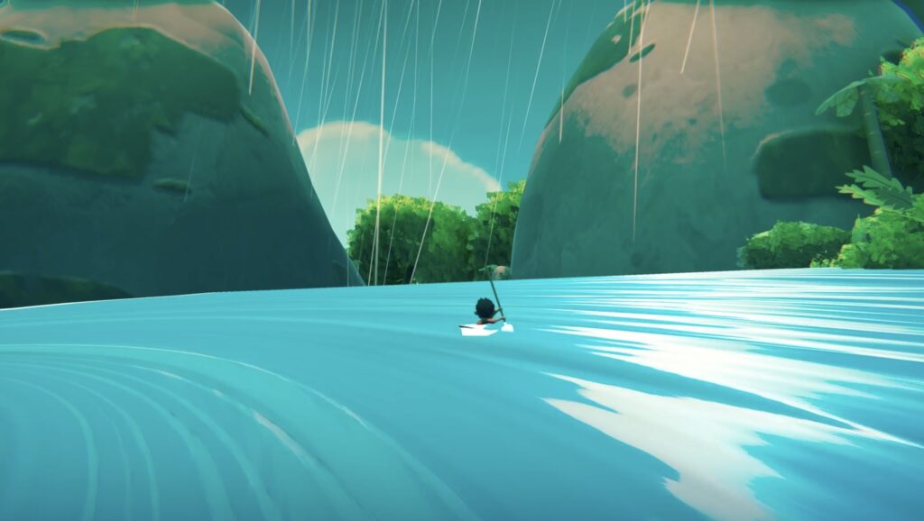 Once past, you have to tackle the water incline. Rather than hammering the A button, steadily press the A button in pattern with the oar that Miho is paddling with, this will give you more strength as you push to the other side: