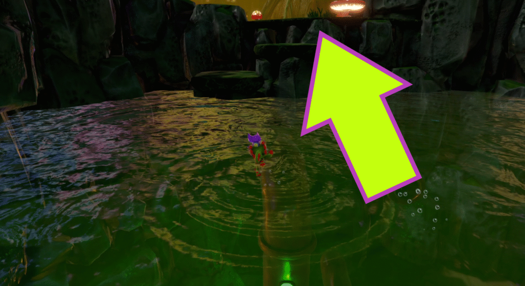 Jump into the pool of water and look for three Quills nestled amongst some rocks on the waterbed.