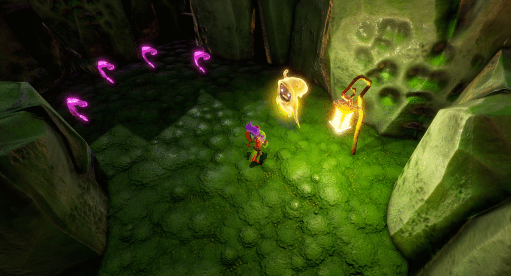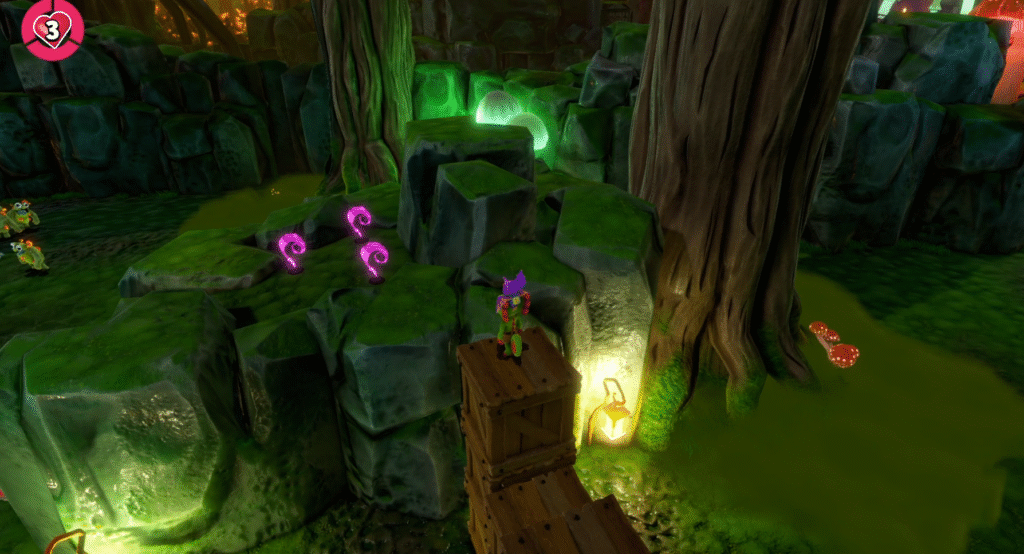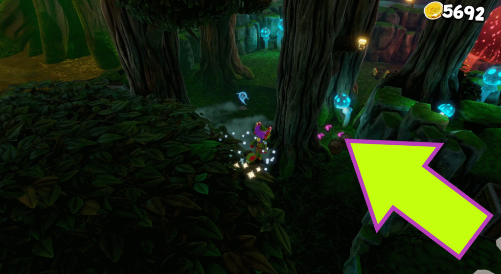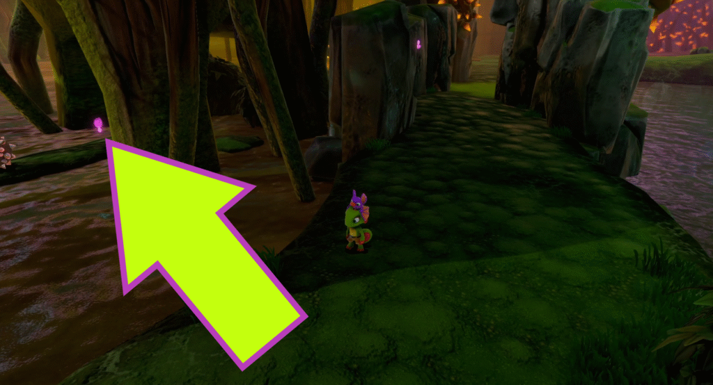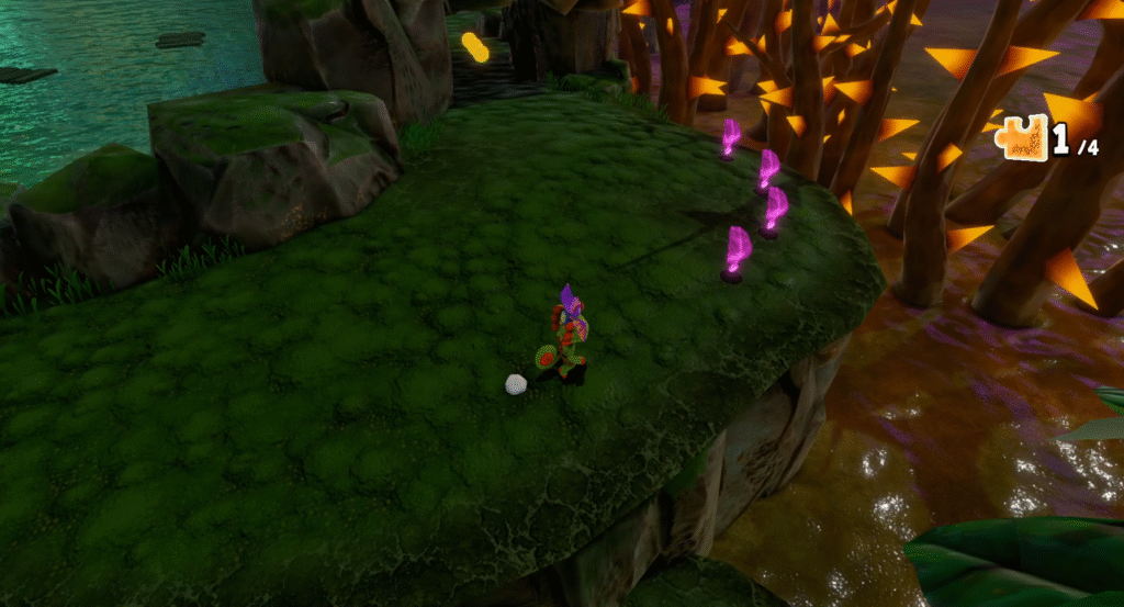 Near where you found the previous Quills is a block you need to use Yooka’s tongue to pull down. This clears a path to three more Quills.