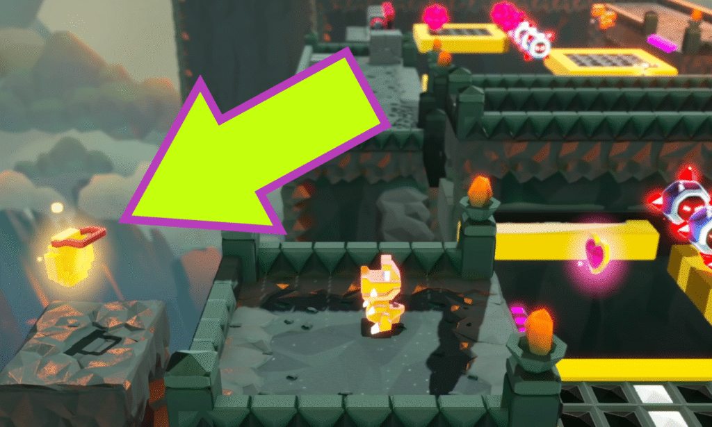 Use Yooka’s Camouflage to trick the chips and sneak into the ring to grab the Pagie Piece.