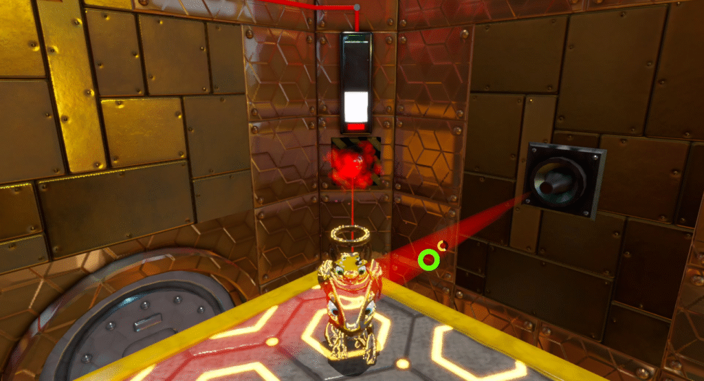 Look back over the main path to see another slot machine. To the right of it is an area with a red light shining down. Have Yooka stand in the light and use his Camouflage ability to redirect the light into a beam. Turn to move the beam and hit the lock to make another light appear. Do the same thing with this light to hit two locks and open a door.