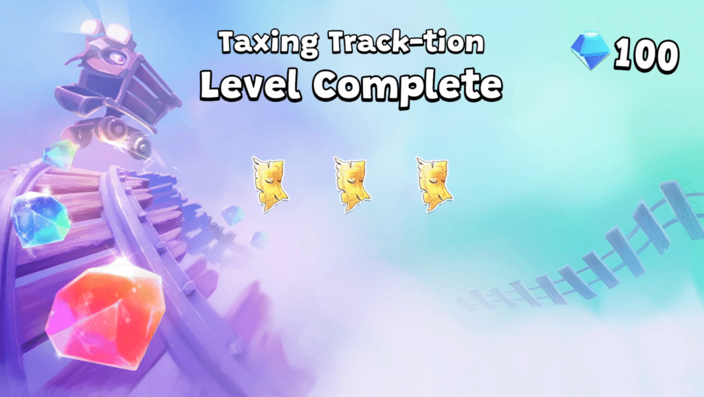Glide back to where you climbed up onto the first roof and use the nearby tongue hookshot point to reach Kartos the minecart! Accept his minecart track challenge and collect all of the gems in one go to earn all three Pagies.