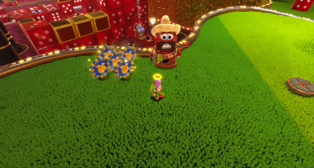 Most of these Cashino Tokens can be won from a variety of casino-themed minigames around the level, but there are also some loose in the environment. For every five Cashino Tokens you collect, you can get one Pagie, and thankfully, you collect the majority in batches of five. To make this guide clearer to understand, we will list everything as Pagies and Pagie Pieces as we have with our other guides.