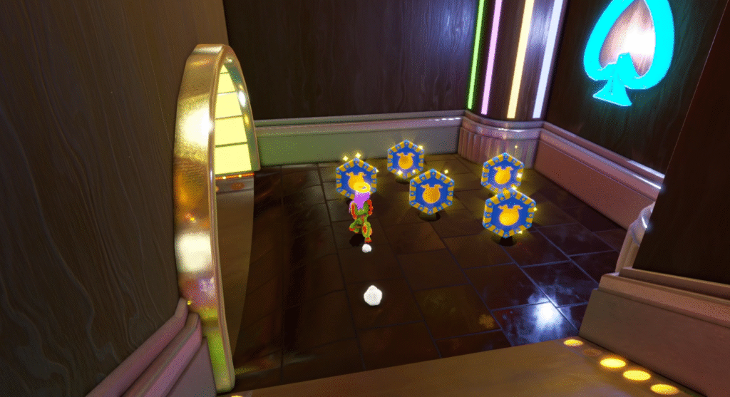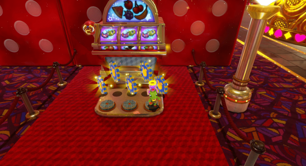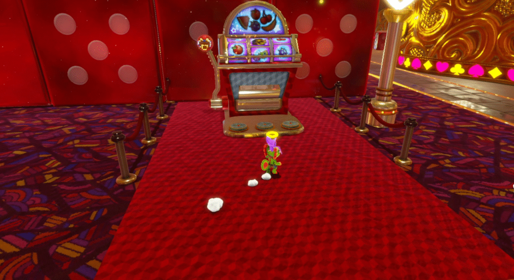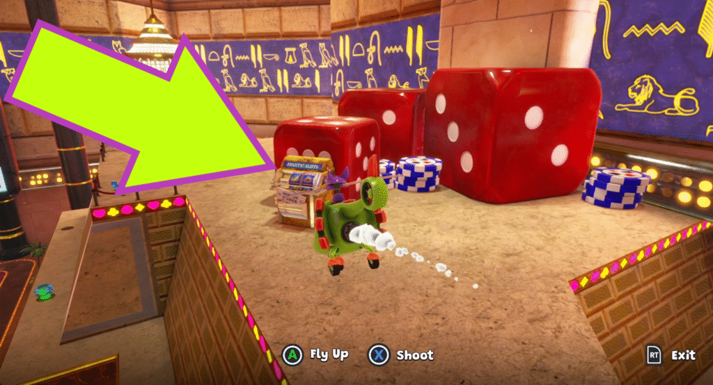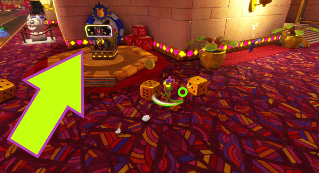 Head back to the slot machine next to the red light puzzle and get three Yooka-Laylee faces in a row to earn five more Cashino Tokens.