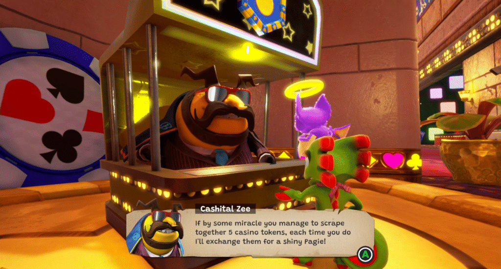 collectathon should have. While the game does a great job of tracking what you have found, it’s not always easy to track them down in the first place. From Pagies to Play Coins, we are here to help you find them all! So, here is our Yooka-Replaylee Capital Cashino Pagies Guide.