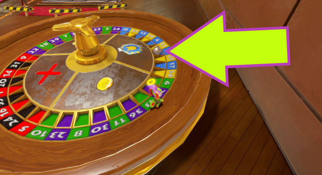 Look for the nearby Mark fast travel point and activate it. You should be near a roulette table. Jump on the button to make the ball appear and knock it onto the spinning roulette wheel. Make sure it stops in the quarter with the Cashino Tokens icon to win five Tokens for yourself.